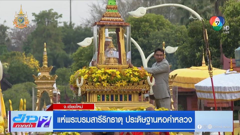 ข่าวภาคค่ำ - หัวหน้าส่วนราชการและชาวพุทธในจังหวัดเชียงใหม่ ได้ร่วมกันอัญเชิญพระบรมสารีริกธาตุ มาประดิษฐานที่อุทยานหลวงราชพฤกษ์ ท่ามกลางบรรยากาศขบวนแห่แบบล้านนาที่สวยงาม