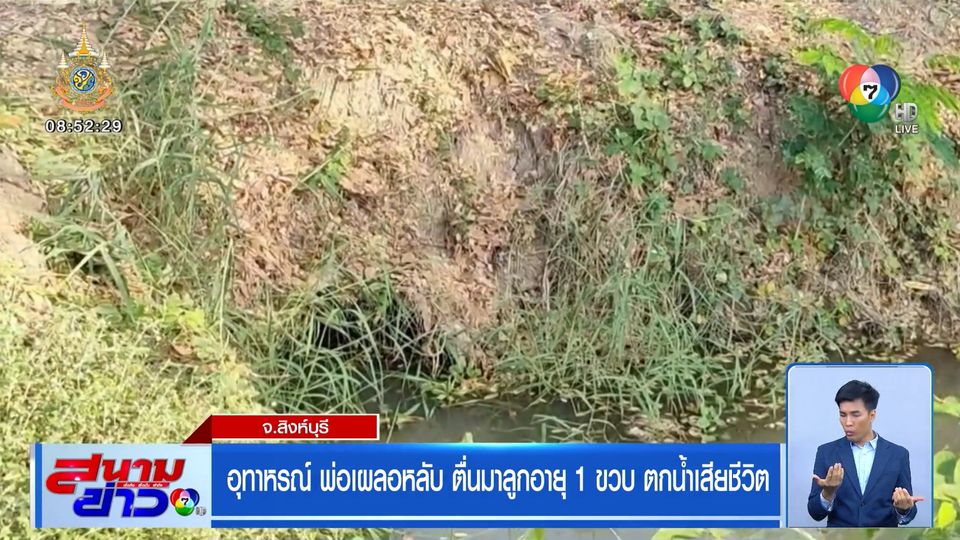 สนามข่าว 7 สี - ไปกันที่จังหวัดสิงห์บุรี อุทาหรณ์พ่อเผลอหลับ ทำลูกชาย อายุ 1 ขวบ พลัดตกน้ำ เสียชีวิต