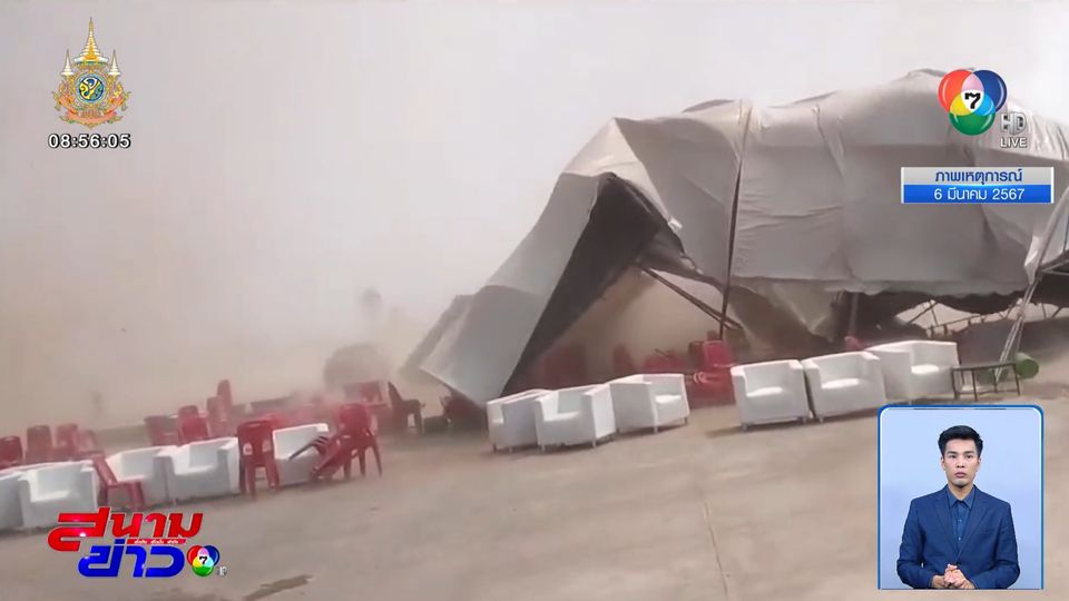 สนามข่าว 7 สี - เหตุการณ์นี้สุดระทึก จู่ ๆ ก็มีลมหมุนลูกใหญ่ พัดถล่มเต็นท์ที่ตั้งอยู่ลานกลางแจ้ง ในพื้นที่จังหวัดมุกดาหาร พังเสียหายแทบทั้งหมด