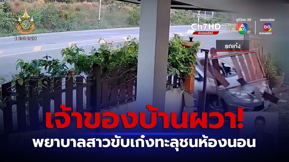 ข่าวเย็นประเด็นร้อน - พยาบาลสาวขับรถเก๋งเสียหลักพุ่งชนประตูบ้าน ก่อนทะลุเข้าไปชนกำแพงห้องนอน ขณะที่เจ้าของบ้านรอดตายหวุดหวิด เพราะตื่นแต่เช้าไปขายของ บอกครั้งนี้เป็นครั้งที่ 3 ที่รถพุ่งเข้ามาชน