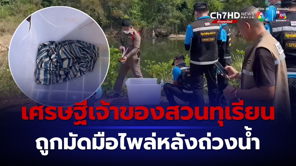 หญิงถูกฆ่าเปลือย มัดมือไพล่หลัง เป็นคุณยาย อายุ 60 ปี เจ้าของสวนทุเรียน เบาะแสครั้งสุดท้ายนั่งซ้อนรถจยย.ไปกับคนงานกรีดยาง ตร.เรียกสอบลูกสาว-ลูกชาย และคนใกล้ชิด