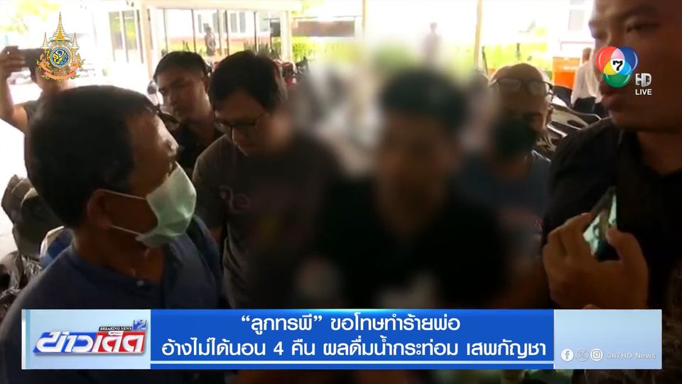 ข่าวเด็ด 7 สี - ผู้ต้องหาที่ก่อเหตุล็อกคอพ่อตัวเอง แล้วทำพ่อตกลงมาจากที่พัก อ้างว่าทำไปเพราะไม่ได้นอนมานานกว่า 4 คืน ประกอบกับดื่มน้ำกระท่อม และเสพกัญชา จนเกิดอาการหลอน หูแว่ว ได้ยินจะมีคนมาทำร้ายร่างกาย จึงชักมีดมาป้องกันตัว