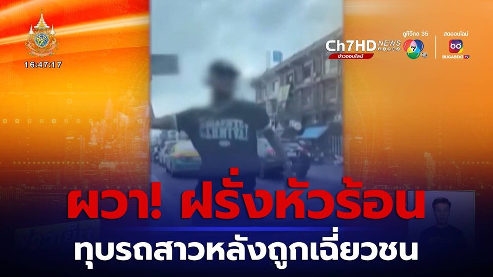 ข่าวเย็นประเด็นร้อน - สาวผวาเจอ ชายต่างชาติขี่รถจักรยานยนต์ด้านหน้า แล้วเบรกกะทันหัน จนเธอชนท้าย สุดท้ายชาวต่างชาติรายนี้ลงมาทุบรถ พยายามทำร้ายร่างกาย