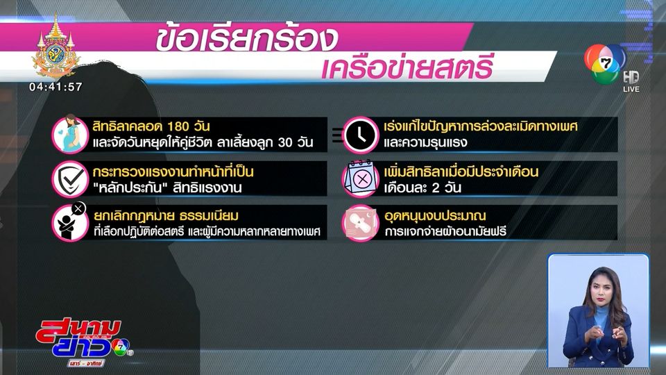 สนามข่าวเสาร์-อาทิตย์ - กลุ่มแรงงานหญิง ยื่นหนังสือ เนื่องในวันสตรีสากล เรียกร้องเพิ่มวันลาคลอด ยกเลิกกฏหมายเลือกปฏิบัติ-อุดหนุนงบฯ แจกผ้าอนามัยฟรี ตัวแทนรับผิดหวัง ถูก เจ้าหน้าที่สกัด ไม่ให้เข้าใกล้ทำเนียบ