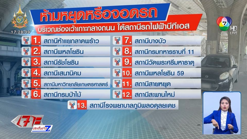 เจาะประเด็นข่าว 7HD - ฟังทางนี้ดี ๆ ใครชอบไปจอดรถ บริเวณช่องเว้า เกาะกลางใต้สถานีรถไฟฟ้าบีทีเอส เตรียมถูกปรับได้เลย เพราะเขาห้ามจอด มันไปกีดขวาการซ่อมบำรุงรถไฟฟ้า แต่หลายคนไม่รู้ ขนาดตอนที่ทีมข่าวไปเก็บภาพ ก็ยังมีจอดให้เราถ่าย ไม่หนีไปไหนเลย