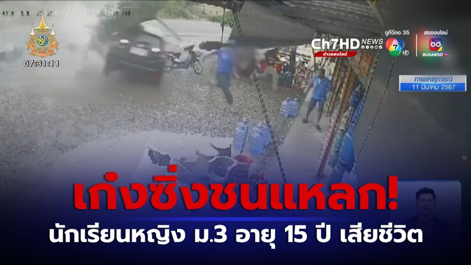 สนามข่าว 7 สี - อุบัติเหตุระทึกนำมาซึ่งความสูญเสีย เมื่อจู่ ๆ นักเรียนหญิงชั้น ม.3 อายุ 15 ปี ขี่รถจักรยานยนต์อยู่ดี ๆ และกำลังจะแซงรถที่ชะลอความเร็ว แต่กลับถูกรถเก๋ง สีดำ ขับซิ่งด้วยความเร็วพุ่งชนอย่างจังเสียงดังสนั่น จนรถไถลไปชนรถชาวบ้านที่จอดอยู่ข้างร้านขายของชำพังเสียหาย ส่วนนักเรียนหญิงเสียชีวิต
