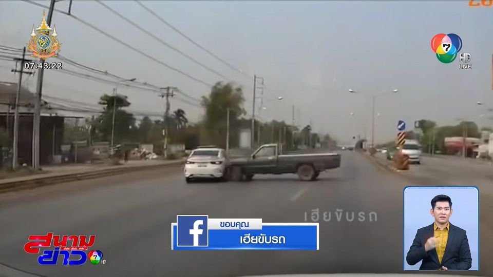 สนามข่าว 7 สี - อุบัติเหตุบนท้องถนนเตือนเป็นอุทาหรณ์ เวลาขับรถมาแล้วเป็นจังหวะวัดใจ เราจะหยุด หรือเขาจะหยุด สุดท้ายไม่มีใครหยุด ก็ชนจัง ๆ แบบนี้เลย