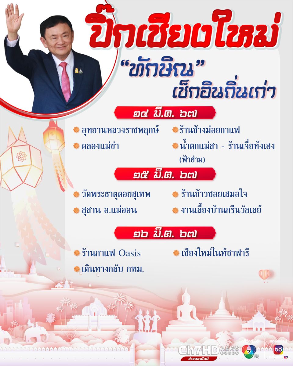 เปิดจุดเช็กอิน ทักษิณกลับเชียงใหม่จังหวัดบ้านเกิดในรอบ 17 ปี เลี่ยงมวลชนเพื่อไม่ให้ถูกร้องทบทวนการพักโทษ