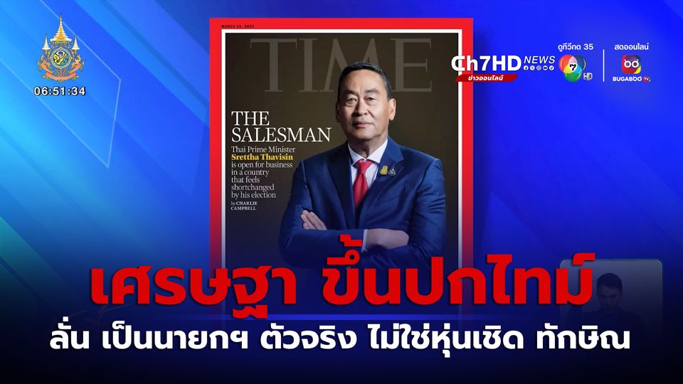 เช้านี้ที่หมอชิต - นายกฯ เศรษฐา ขึ้นปกนิตยสาร TIME วันที่ 25 มีนาคม ในภาพลักษณ์ "THE SALESMAN" พร้อมเคลียร์ชัด ๆ ผ่านสื่อระดับโลกว่า เขาคือผู้นำตัวจริง ไม่ใช่หุ่นเชิดของอดีตนายกฯ ทักษิณ