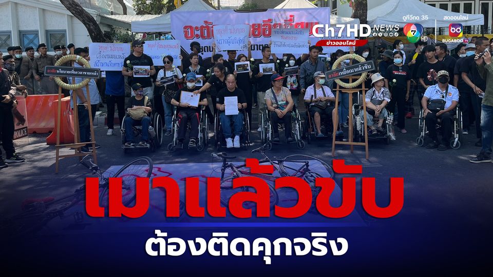 เหยื่อเมาแล้วขับ นั่งวีลแชร์ - ถือพวงหรีด ร้องรัฐบาลเพิ่มโทษเมาแล้วขับ ติดคุกจริงไม่รอลงอาญา พร้อมค้านแก้ไข พ.ร.บ. ควบคุมแอลกอฮอล์ ขยายเวลาขายเหล้า จี้รัฐบาลอุ้มประชาชน มากกว่าเอื้อนายทุน