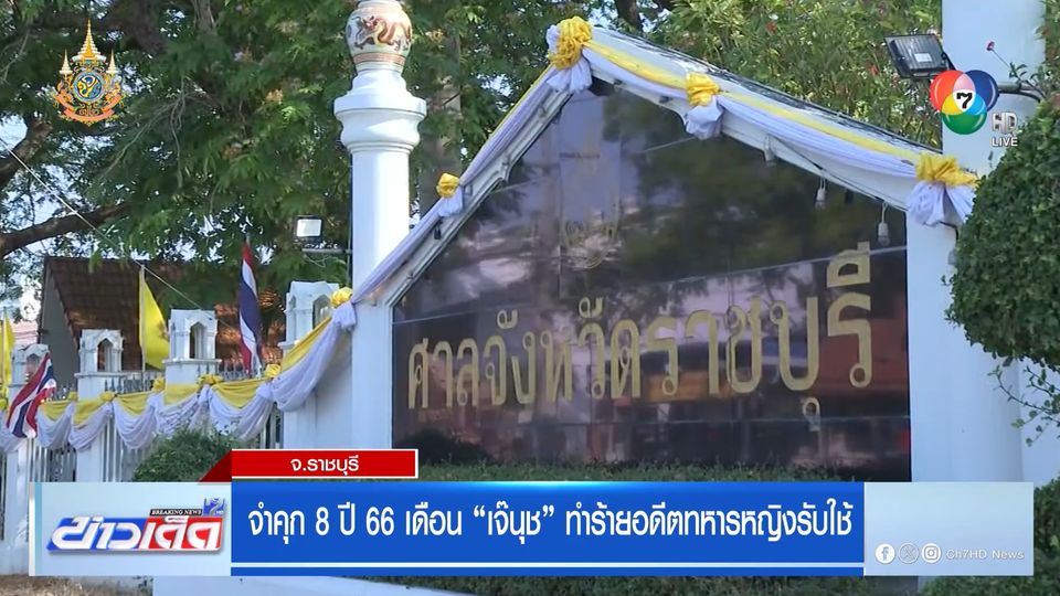 ข่าวเด็ด 7 สี - ศาลจังหวัดราชบุรี พิพากษาจำคุก 8 ปี 66 เดือน สิบตำรวจโทหญิง กรศศิร์ บัวแย้ม ฐานทำร้ายร่างกายผู้อื่นให้ได้รับบาดเจ็บสาหัส, ฐานกรรโชกทรัพย์ อดีตทหารหญิงรับใช้ โดยเหตุเกิดเมื่อเดือนสิงหาคม 2565