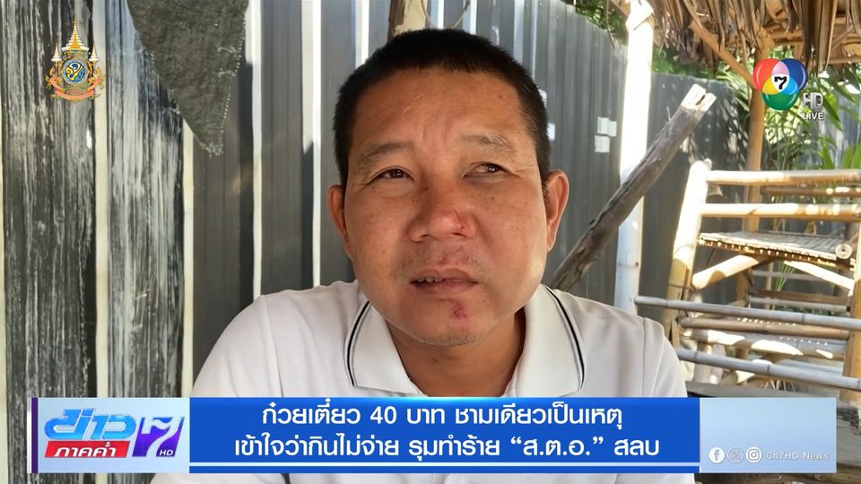 ข่าวภาคค่ำ - "สิบตำรวจเอก" ไปกินก๋วยเตี๋ยว เจ้าของร้านหาว่าค้างชำระค่าก๋วยเตี๋ยว 40 บาท ที่กินไว้เมื่อวันก่อน พยายามชี้แจงแต่ไม่ฟัง จนเกิดมีปากเสียงกับแฟนเจ้าของร้าน แล้วถูกรุมทำร้ายจนสลบ