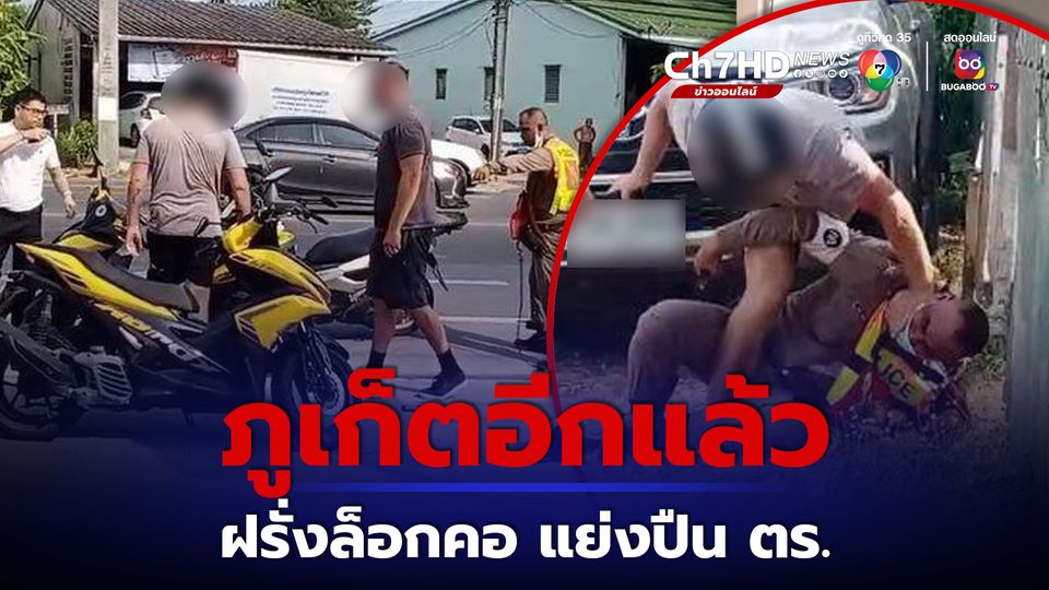 ภูเก็ตอีกแล้ว หนุ่มนิวซีแลนด์ 2 คน ล็อกคอทำร้ายตำรวจ หลังฝ่าฝืนกฎจราจร ไม่พอใจถูกถ่ายคลิป พยายามแย่งปืนตำรวจ ระหว่างยื้อแย่งเกิดเหตุปืนลั่น 1 นัด