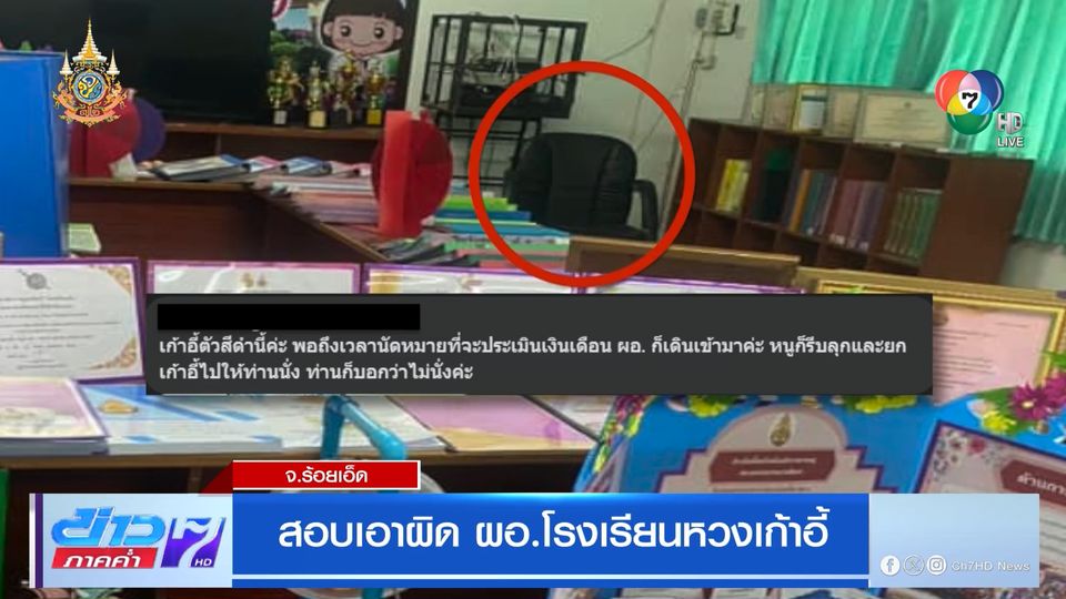 จากแชตไลน์ที่ผอ.โรงเรียน ในจังหวัดร้อยเอ็ด ตำหนิครู เหตุที่ไปนั่งเก้าอี้ผอ.ในห้องประชุม จนบอกว่า เสียใจจนแขนขาอ่อนแรง พอครู ขอโทษ และบอกว่า จะซื้อตัวใหม่ให้ ผอ.ก็บอกไม่เป็นไร เดี๋ยวโรงเรียนจะซื้อเก้าอี้ตัวใหม่เอง กลายเป็นกระแสดรามาโซเชียล ผอ.หวงเก้าอี้