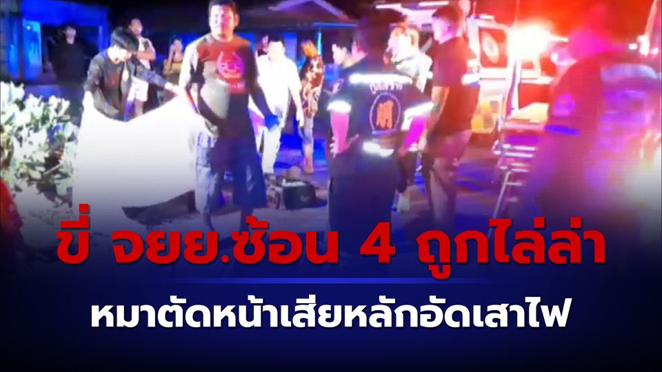 4 เยาวชนถูกอริไล่ล่า ก่อนขี่รถจยย.ซ้อน 4 บิดหนีสุดชีวิต ก่อนเจอหมาวิ่งตัดหน้า ทำให้รถ จยย.เสียหลักอัดกับเสาไฟ เยาวชนหญิงวัย 12 ดับ 1 ส่วนเยาวชนชายอีก 3 คน บาดเจ็บ ขณะที่ เยาวชนทั้ง 4 พก มีดดาบ มีดบังตอ และเหล็กแท่ง ติดตัวด้วย