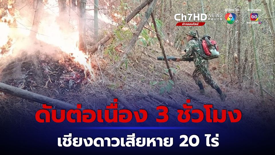 เจ้าหน้าที่ไฟป่าเชียงดาว สนธิกำลังร่วมกับอาสาสมัคร เข้าควบคุมเพลิงไหม้ในพื้นที่ ใช้เวลาร่วม 3 ชั่วโมง สามารถสกัดไฟป่าได้สำเร็จ เสียหาย 20 ไร่