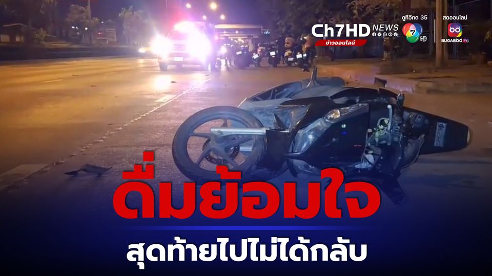 สาววัย 33 ปี ยืมจักรยานยนต์เพื่อนข้างห้องไปดื่มย้อมใจ หลังมีปากเสียงกับแฟนหนุ่ม ก่อนกลับคาดเมาหนัก เสียหลักเสยต้นมะขาม-ฟุตพาท ดับคาสลด