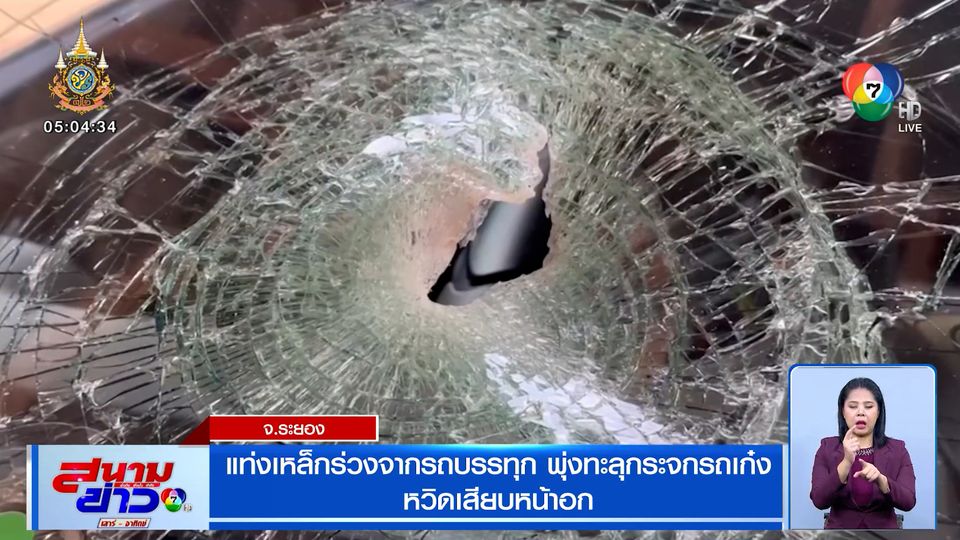 สนามข่าวเสาร์-อาทิตย์ - เหตุการณ์นี้ น่าหวาดเสียว หญิงคนหนึ่งขับรถเก๋งมากับหลานชาย เจอรถบรรทุกพ่วงขนแท่งเหล็กยาวประมาณ 1 เมตร หล่นพุ่งทะลุกระจกรถ หวิดเสียบหน้าอก