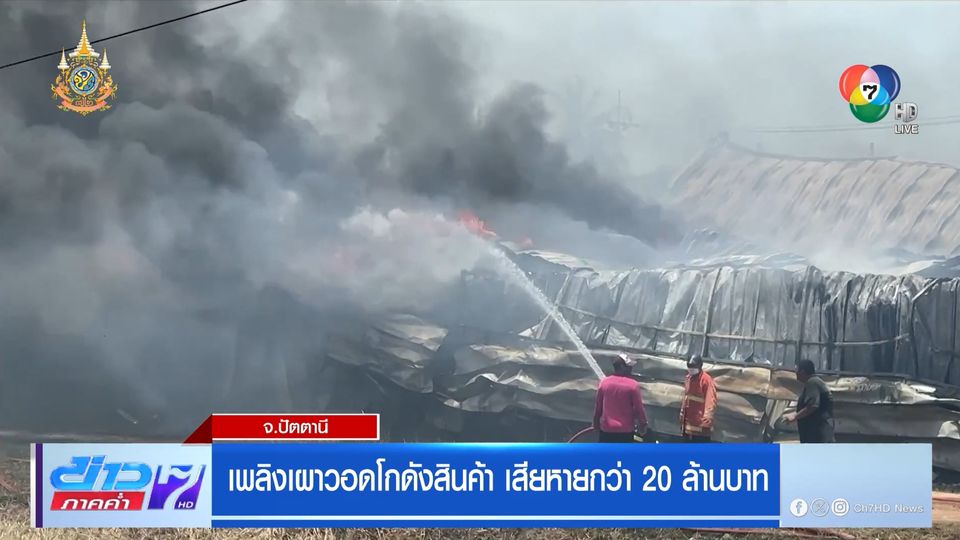 ข่าวภาคค่ำ - ที่จังหวัดปัตตานี เกิดเพลิงโหมลุกไหม้โกดังสินค้าขนาดใหญ่ และร้านค้าริมถนนหนองจิก-นาเกตุ มูลค่าความเสียหายกว่า 20 ล้านบาท