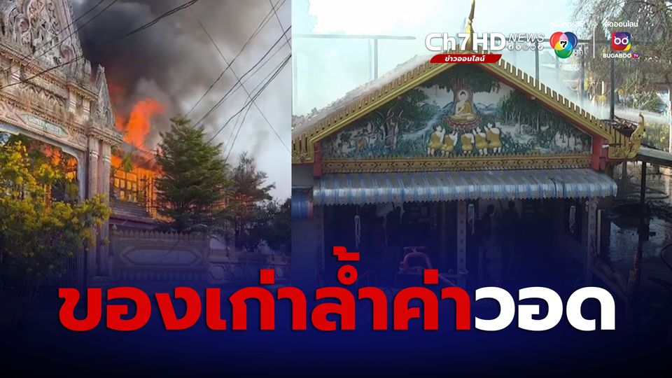 ไฟไหม้ศาลาการเปรียญ สูญพระพุทธรูปเก่าแก่ อายุกว่า 300 ปี ของโบราณหลายชิ้นจมกองเพลิง ศาลาหลังนี้สร้างจากไม้เก่าที่ญาติโยมร่วมกันบริจาค