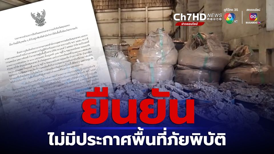 กระทรวงมหาดไทย เผย การพบกากแคดเมียมในโรงงานสมุทรสาคร ยังไม่มีการประกาศพื้นที่ภัยพิบัติ มีเพียงประกาศงดเข้าพื้นที่ 90 วัน เพื่อเจ้าหน้าที่ดำเนินการควบคุมและตรวจสอบ พร้อมดำเนินตามมาตรการทางความปลอดภัย