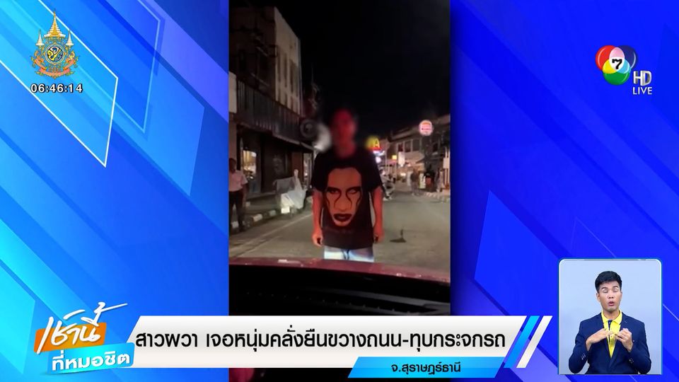 เช้านี้ที่หมอชิต - สาวเจ้าของร้านขายยาบนเกาะสมุย ผวา ขับรถเก๋งอยู่ดี ๆ ถูกหนุ่มคลั่งยืนขวางถนน พร้อมตะโกนเอะอะโวยวายให้ถอยรถ ก่อนทุบกระจกมองข้างรถเสียหาย