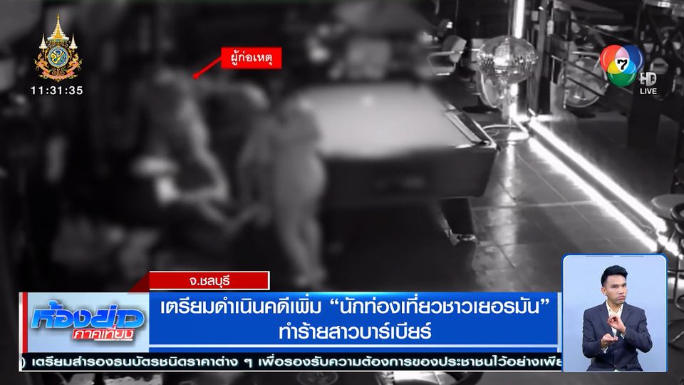ความคืบหน้ากรณีนักท่องเที่ยวชาวเยอรมัน ก่อเหตุทำร้ายผู้จัดการ และพนักงานร้านบาร์เบียร์แห่งหนึ่ง ในซอยเล้งกี่ อำเภอบางละมุง จังหวัดชลบุรี ซึ่งคดีนี้กล้องวงจรปิดภายในร้านบันทึกภาพหลักฐานไว้ได้อย่างชัดเจน ขณะพนักงานร้านนำบิลเครื่องดื่มไปให้นักท่องเที่ยวคนดังกล่าวจ่าย แต่เขากลับอ้างว่าไม่ได้สั่งเครื่องดื่มมากขนาดนี้