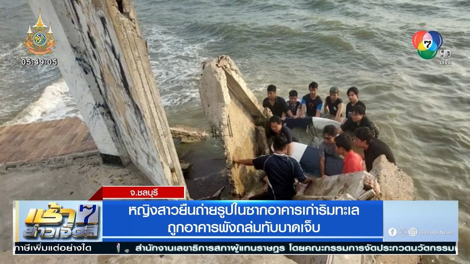 นี่เป็นภาพเหตุการณ์ที่เจ้าหน้าที่หน่วยกู้ภัยมูลนิธิไตรคุณธรรม จังหวัดชลบุรี และชาวบ้าน เข้าช่วยเหลือหญิงสาวและชายหนุ่ม ที่ติดอยู่ใต้ซากผนังอาคารเก่า ซึ่งพังถล่มลงไปในทะเล บริเวณชายหาดวอนนภา ตำบลแสนสุข อำเภอเมืองชลบุรี จังหวัดชลบุรี เหตุเกิดเมื่อช่วงเย็นวานนี้ (9 เม.ย.)