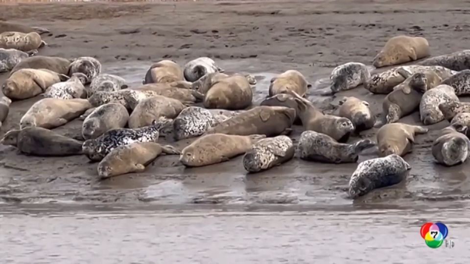 ทางการท้องถิ่นในมณฑลเหลียวหนิง ของจีน เผยพบแมวน้ำลายจุดหลายร้อยตัว นอนคลุกดินโคลนอยู่บนที่ราบริมชายฝั่งของอ่าวเหลียวตง (Liaodong Bay) ภายในอุทยานสงวนพันธุ์สัตว์แห่งชาติในเมืองผานจิน (Panjin City)ของมณฑลเหลียวหนิง ทางตะวันออกเฉียงเหนือของจีน เมื่อวันอังคาร ที่ผ่านมา