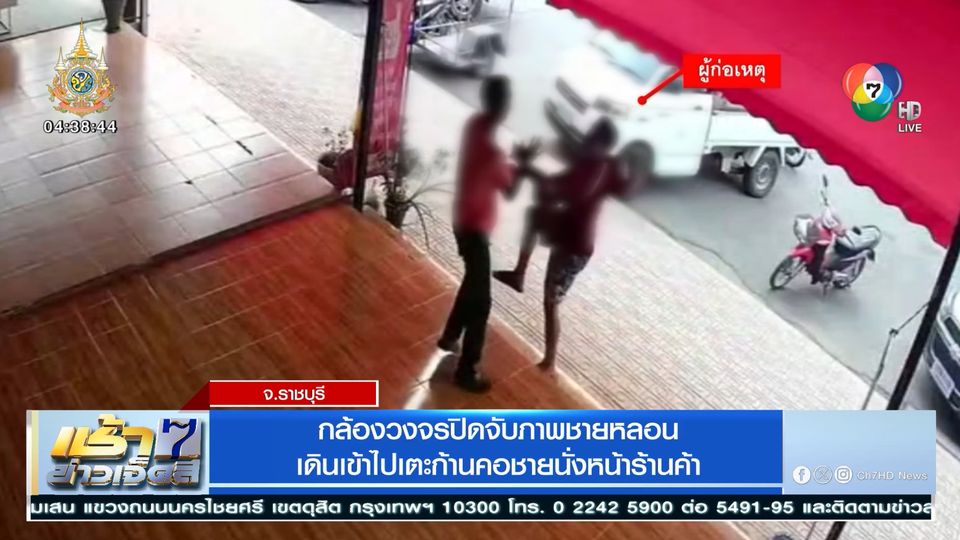 เช้าข่าว 7 สี - ชายที่คาดว่าน่าจะหลอนยาเสพติด เดินเข้าไปเตะชายที่นั่งอยู่บริเวณหน้าร้านค้าแห่งหนึ่ง ในเขตเทศบาลเมืองราชบุรี ซึ่งกล้องวงจรปิดบันทึกภาพเอาไว้ได้