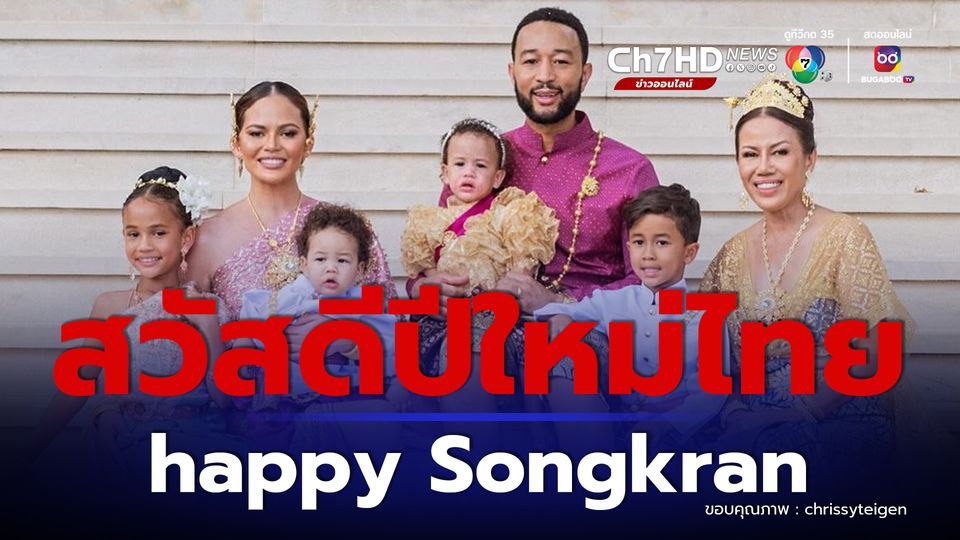 Chrissy Teigen (คริสซี ทีเกน ) นางแบบลูกครึ่งไทย-นอร์เวย์ ภรรยาคนสวยของศิลปินชื่อดังระดับโลก John Legend (จอห์น เลเจนด์) ได้โพสต์ภาพสวมชุดไทยสีชมพู และภาพครอบครัวที่พากันใส่ชุดไทยมาร่วมอวยพร สวัสดีปีใหม่ไทย happy songkran