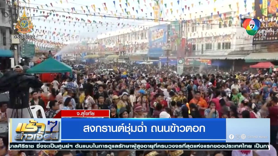 ขึ้นเหนือไปดูบรรยากาศสงกรานต์ที่บริเวณวงเวียนหอนาฬิกา จังหวัดสุโขทัย นักท่องเที่ยว หลั่งไหลไปเที่ยวงานสงกรานต์เสื้อลายดอก ถนนข้าวตอก สุโขทัย งานสงกรานต์ประจำปี 2567 มีขบวนสรงน้ำพระแม่ย่า พระร่วง พระลือ ขบวนนางสงกรานต์ และหนูน้อยสงกรานต์ พร้อมเปิดน้ำจากท่อน้ำขนาดใหญ่ ให้ประชาชนที่เข้ามาร่วมเล่นน้ำสงกรานต์กันอย่างชุมฉ่ำคลายร้อน และทางจังหวัดสุโขทัย ทำอุโมงค์น้ำยาวกว่า 200 เมตร ให้ประชาชนเล่นน้ำคลายร้อน และวันนี้อีกวัน (15 เม.ย.) สงกรานต์เสื้อลายดอกถนนข้าวตอกสุโขทัย จะเปิดให้ประชาชนเล่นน้ำไปถึง 19.00 น.