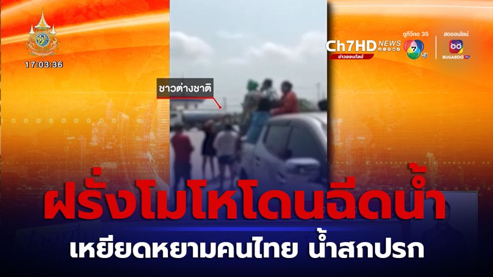 ข่าวเย็นประเด็นร้อน - ชายชาวต่างชาติ และภรรยาคนไทย ไม่พอใจกลุ่มคนไทยที่เล่นฉีดน้ำ จนน้ำกระเด็นใส่แก้วกาแฟ บุกพูดจาข่มขู่ และเหยียดหยาม จนเกิดเรื่องวุ่น ๆ ขึ้น