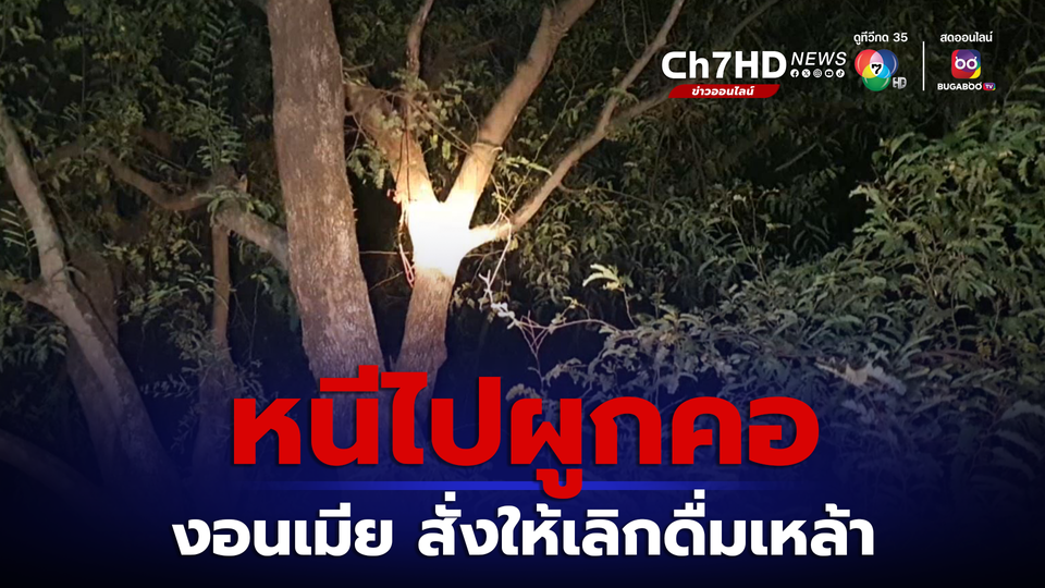 ผัวงอนเมีย บอกให้เลิกดื่มเหล้า หนีไปผูกคอตาย บนต้นมะขาม โชคดีลูกช่วยไว้ทัน