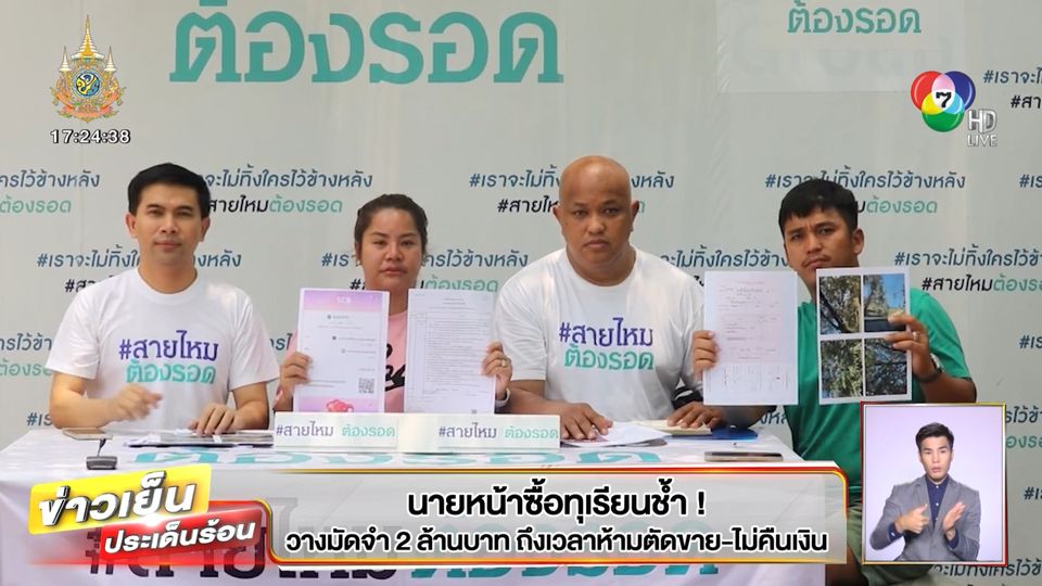 นางสาวหัตศกร อัครนพทรัพย์ อายุ 31 ปี พร้อมด้วยสามี เข้ามาขอความช่วยเหลือกับ นายเอกภพ เหลืองประเสริฐ ที่ปรึกษารัฐมนตรีว่าการกระทรวงมหาดไทย และผู้ก่อตั้งเพจสายไหมต้องรอด ขอให้ช่วยเรื่องกฎหมาย เอาผิดกับเจ้าของสวนทุเรียนที่ มาหลอกเอาเงินมัดจำไป 2 ล้านบาท