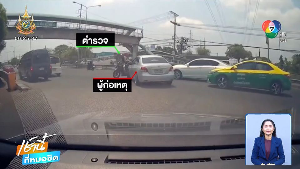 เช้านี้ที่หมอชิต - เร่งล่ารถเก๋ง ขับซิ่งฝ่าด่านตรวจ ตำรวจขี่รถจักรยานยนต์ไล่ตาม ถูกชนบาดเจ็บ คาดในรถมีสิ่งผิดกฎหมาย