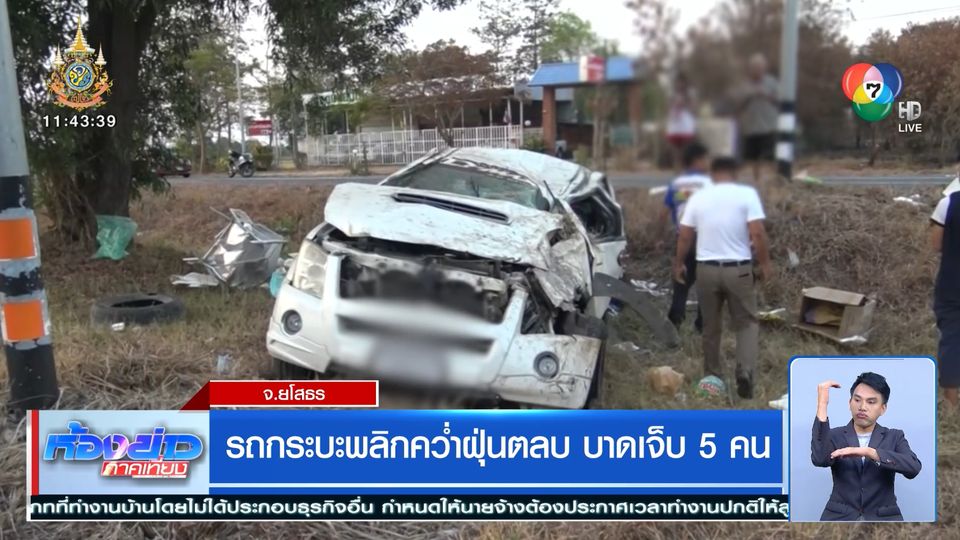 รถกระบะพลิกคว่ำฝุ่นตลบ บาดเจ็บ 5 คน