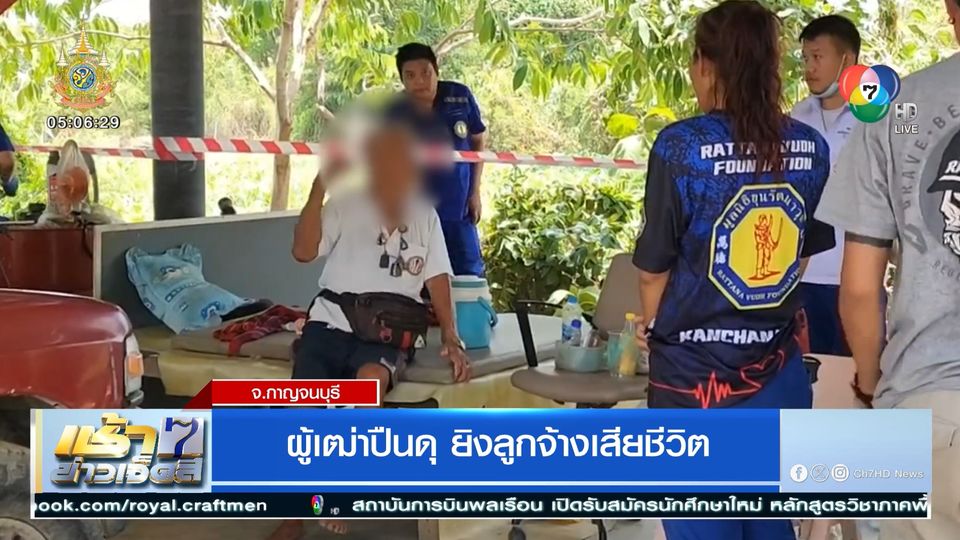 เช้าข่าว 7 สี - ที่จังหวัดกาญจนบุรี เกิดเหตุการณ์ผู้เฒ่าปืนดุ คว้าปืนยิงลูกน้องเสียชีวิต อ้างสาเหตุป้องกันตัว เห็นลูกน้องเดินปรี่เข้ามาจะทำร้าย พร้อมกับพูดท้าทาย จนเกิดบันดาลโทสะ ภายหลังทั้งคู่มีปากเสียงทะเลาะกันเป็นประจำ เพราะผู้เสียชีวิตชอบแอบขโมยของไปขาย
