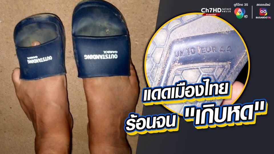 ขณะเดียวกันผู้โพสต์ยังได้เผยให้เห็นสภาพรองเท้าแตะพลาสติกคู่ที่ซื้อมา ถูกแดดเผาจนหด แถมบิดงอผิดรูป จนทำให้ขนาดของรองเท้าทั้ง 2 ข้าง ไม่เท่ากัน โดยผู้โพสต์ยืนยันไม่ได้หยิบมาผิดคู่ แต่เป็นฤทธิ์ของแดดเมืองไทยที่ทำให้เป็นแบบนี้ โดยสิ่งที่เกิดขึ้นทำให้ผู้ที่อยู่ในเหตุการณ์กลั้นขำไม่ไหว พากันขำจนปอดโยกกับรองเท้าหด แต่ต้องวิตกกับความน่ากลัว อย่าได้ล้อเล่นกับแสงแดดเมืองไทย