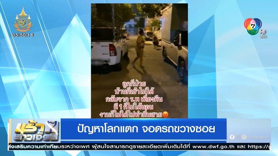 เช้าข่าว 7 สี - ลูกบ้านหมู่บ้านแห่งหนึ่ง เจอปัญหาโลกแตกอีกแล้ว มีรถจอดขวางในซอย ทำให้เข้าบ้านไม่ได้ พาลูกไปหาหมอมาก็เที่ยงคืนแล้ว ง่วง ก็ง่วง กลับเข้าบ้านไปพักผ่อนไม่ได้ จนต้องอัดคลิประบายลงโลกออนไลน์