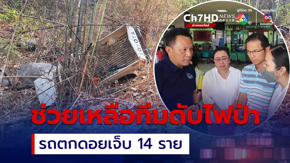 ทีมดับไฟป่ารถตกดอย ระหว่างปฏิบัติหน้าที่ เบื้องต้นเจ็บ 14 ราย ผู้ว่าฯ เชียงใหม่ สั่งช่วยเหลือ พร้อมเตรียมเฮลิคอปเตอร์ เคลื่อนย้ายผู้บาดเจ็บสีแดง หากฉุกเฉิน