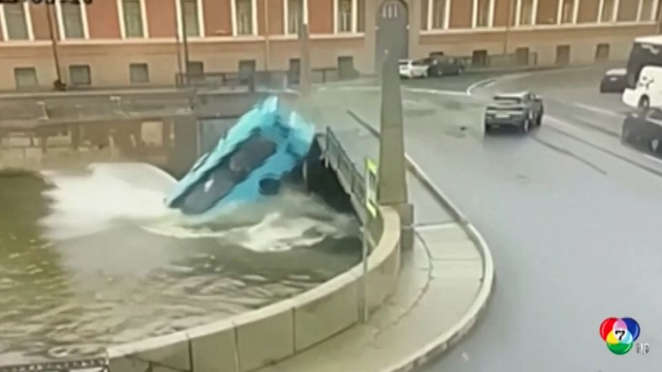 รถโดยสารพุ่งตกแม่น้ำ ในนครเซนต์ปีเตอร์เบิร์ก