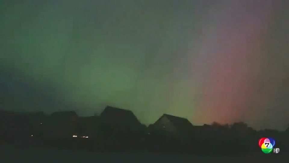 ภาพแสงเหนือ หรือ ออโรรา ที่มีสีสันสดใส ทั้งสีชมพู และสีเขียว สว่างไสวเหนือท้องฟ้า ในเมืองซานอันโตนิโอ รัฐเท็กซัส ของสหรัฐฯ เมื่อคืนวันศุกร์ และเช้าวันเสาร์ที่ผ่านมา ซึ่งเป็นผลจากพายุแม่เหล็กโลกที่ใหญ่ที่สุดในรอบ 20 ปี ที่เกิดจากเปลวสุริยะ ทำให้เกิดปรากฏการณ์แสงเหนือที่สวยงามตระการตา
