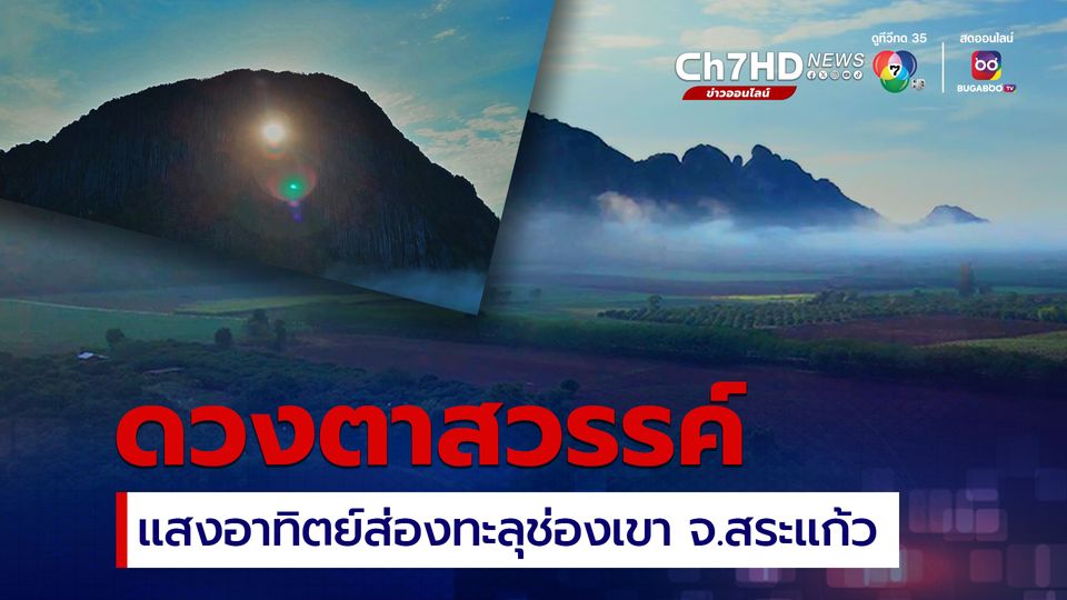 ปรากฎการณ์ธรรมชาติสวยงาม ดวงตาสวรรค์ มหัศจรรย์แสงอาทิตย์ส่องทะลุช่องเขา ที่เทือกเขากกมะม่วง จังหวัดสระแก้ว สามารถมองเห็น "ดวงตาสวรรค์" ได้ปีละ 2 ครั้ง คือ วันที่ 14-16 พฤษภาคม และช่วงวันที่ 17 มิถุนายน