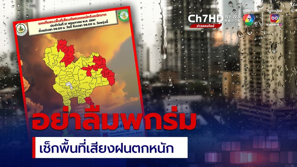 ขอให้ประชาชนในบริเวณดังกล่าวระวังอันตรายจากฝนตกหนักถึงหนักมากและฝนที่ตกสะสม ซึ่งอาจทำให้เกิดน้ำท่วมฉับพลันและน้ำป่าไหลหลาก โดยเฉพาะพื้นที่ลาดเชิงเขาใกล้ทางน้ำไหลผ่านและพื้นที่ลุ่ม รวมทั้งเพิ่มความระมัดระวังในการสัญจรผ่านบริเวณที่มีฝนฟ้าคะนองไว้ด้วย โดยจังหวัดที่คาดว่าจะมีฝนตกหนักถึงหนักมากบางแห่ง ในวันนี้ (21 พ.ค.67) มีดังนี้