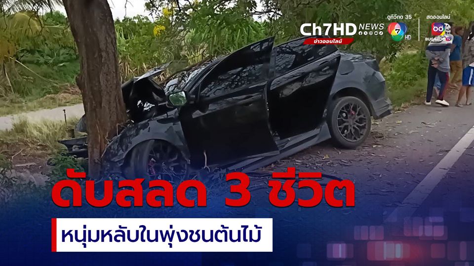 หนุ่มขับรถกระบะหลับในมาด้วยความเร็ว พุ่งชนต้นไม้ เสียชีวิต 3 คน อีก 2 คน อาการสาหัส
