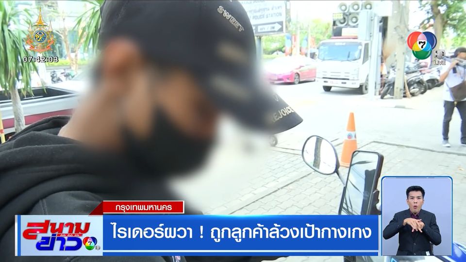 สนามข่าว 7 สี - ไรเดอร์หนุ่มรับผู้โดยสารไปส่งย่านพระราม 3 ระหว่างทางรู้สึกเหมือนมีอะไรแปลก ๆ เลื้อยมาป้วนเปี้ยนแถวเป้ากางเกง พอก้มดูไม่ใช่งู แต่เป็นมือของผู้โดยสารชาย งานนี้ไรเดอร์หนุ่มไม่ยอม ล็อกตัวขึ้นโรงพัก