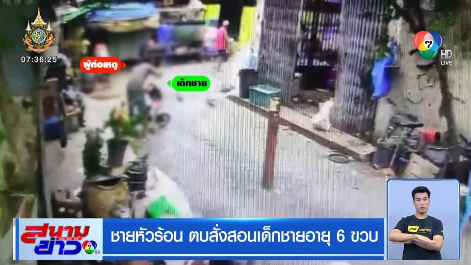 สนามข่าว 7 สี - การสั่งสอนเด็ก ๆ มีหลายแบบ แต่เหตุการณ์นี้รุนแรงไปหรือไม่ เด็กชายอายุ 6 ขวบ ไปปั่นจักรยานเล่น ถูกชายที่อยู่แถวบ้านตบหน้า อ้างว่าเด็กพูดจาไม่ดี