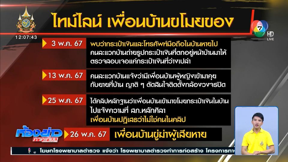 ทีมข่าว7HD โทรคุยกับเจ้าของคลิป บอกว่านี่เป็นครั้งที่ 2 แล้ว ที่มีโจรเข้าบ้าน ครั้งแรก คือ 3 พฤษภาคม พบว่า กระเป๋าเงินและโทรศัพท์มือถือหายไป แต่คนละแวกบ้าน ถ่ายรูปส่งมาให้ดู ว่ามีกระเป๋าเงินตกอยู่ตรงบ้านเขา พอไปดูก็เจอจริง ๆ แต่ไม่เหลือเงินในกระเป๋าเลย 10 วันต่อมา (13 พ.ค.) มีคนถ่ายรูปส่งมาให้ดูอีก ว่ามีเพื่อนบ้านคนหนึ่ง แวะเวียนมาคุยกับยาย บอกว่า ระวังโทรศัพท์หายนะ แล้วก็จากไป เลยตัดสินใจติดกล้องวงจรปิด