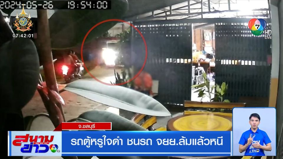 สนามข่าว 7 สี - ไปต่อกันที่จังหวัดชลบุรี รถตู้หรูใจดำ ขับพุ่งชนรถจักรยานยนต์ขณะสวนทางกัน กล้องวงจรปิดบันทึกภาพเหตุเอาไว้ได้